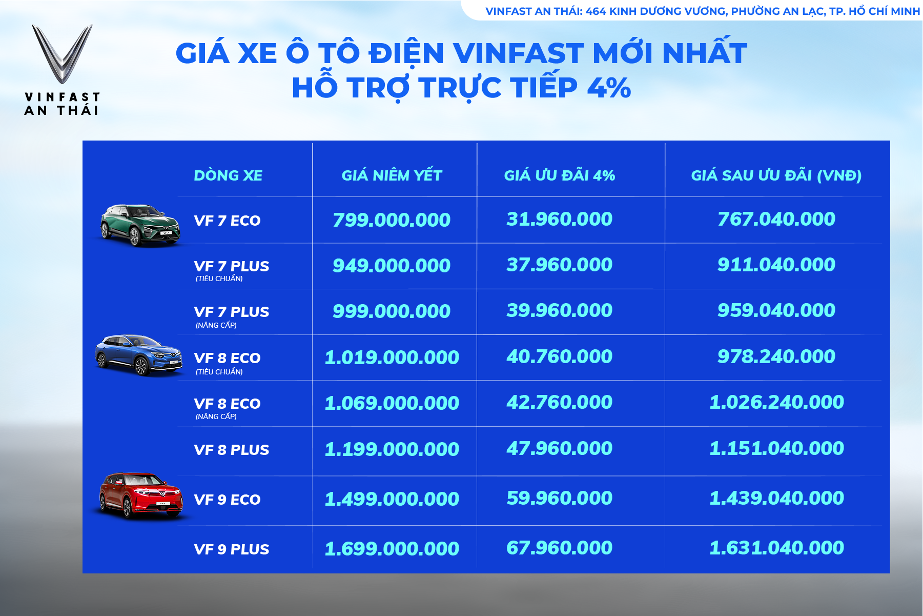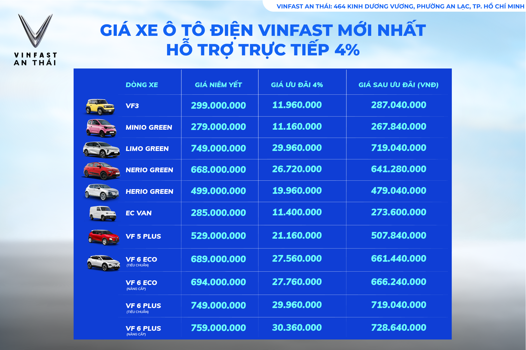 GIÁ XE Ô TÔ ĐIỆN VINFAST MỚI NHẤT – HỖ TRỢ TRỰC TIẾP 4%